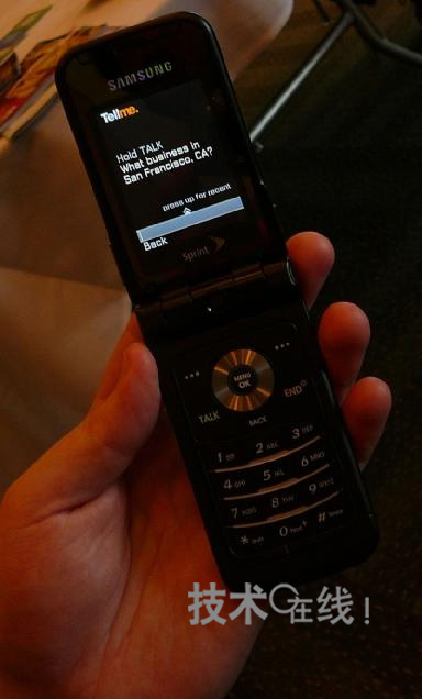 Tellme by Mobile服務(wù)現(xiàn)在為β版。首先,在手機上運行的、約200KB的J2ME支持客戶端軟件錄制用戶說出的檢索關(guān)鍵詞。然后,將錄制好的約2~3KB的語音數(shù)據(jù)轉(zhuǎn)發(fā)至Tellme運營的服務(wù)器。接著,服務(wù)器端便會識別來自語音文件的檢索關(guān)鍵詞,實際執(zhí)行檢索處理,并將結(jié)果以文本數(shù)據(jù)的形式返給客戶端。另外,還可將檢索結(jié)果與在線地圖等信息聯(lián)動。Tellme稱,利用了可獲得適于小屏幕手機的檢索結(jié)果的算法。