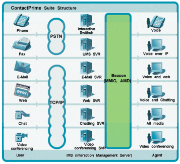 ContactPrime Beacon是ContactPrime系列產(chǎn)品中的一個(gè)組件,它是核心組成元件,可為CSR處理和提交各種多媒體,包括電話、傳真、電子郵件、VoIP、FoIP、語音郵件、Web交互、聊天、視頻會議及Web協(xié)作等。