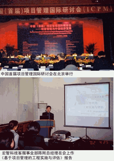 - 2002年4月24日-26日,由國(guó)家經(jīng)貿(mào)委、中國(guó)科學(xué)院、國(guó)家外國(guó)專家局、聯(lián)合國(guó)工業(yè)發(fā)展組織共同主辦的中國(guó)首屆項(xiàng)目管理國(guó)際研討會(huì)在北京舉行,來自30多個(gè)國(guó)家的800多名代表參加了此次大會(huì),宏智公司代表也應(yīng)邀出席了研討會(huì)。