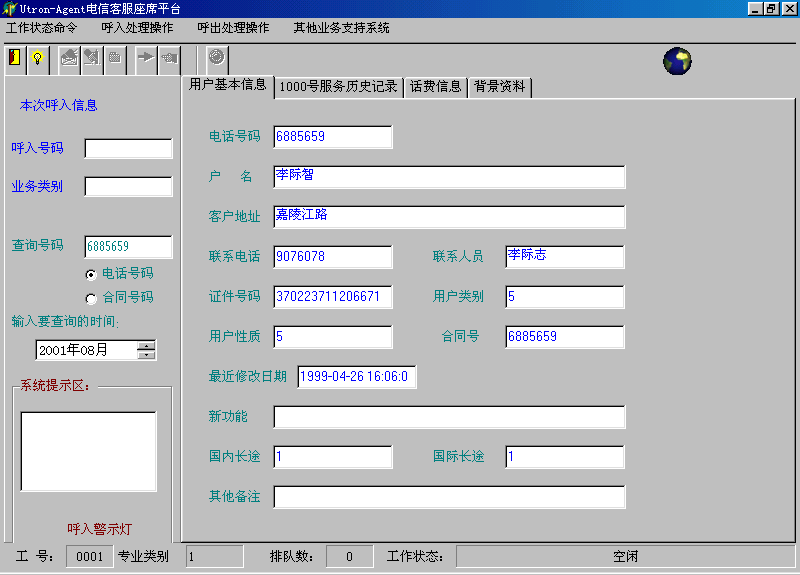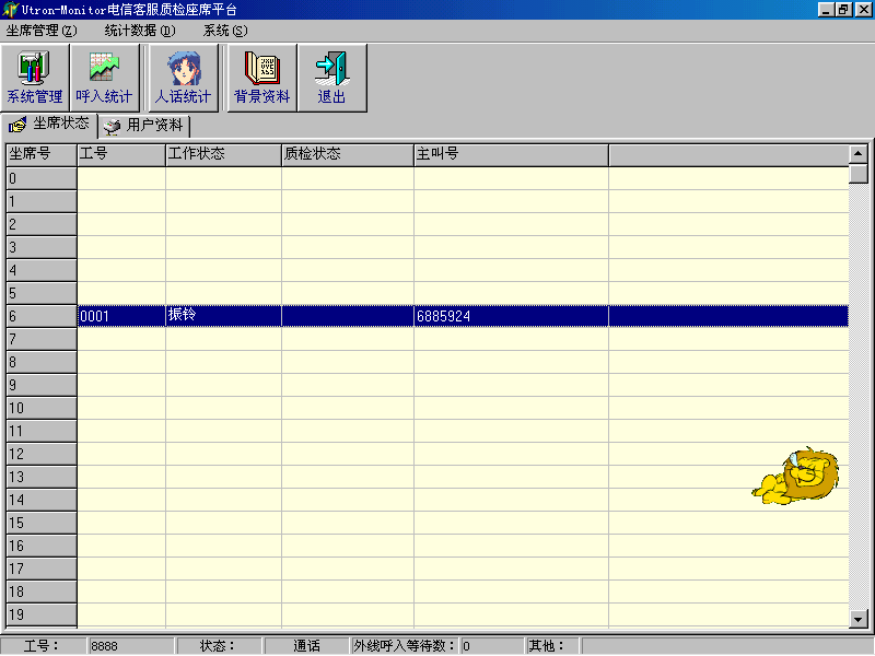 。。座席應答時,在當前座席座席端上顯示系統(tǒng)分配的客戶隊列和在線的客戶信息。同時,通過客戶管理功能,還可以對系統(tǒng)存儲的客戶信息進行維護和管理。