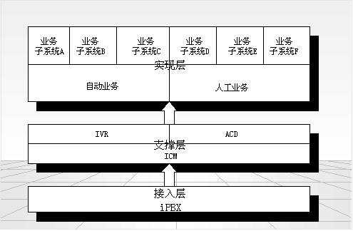 支撐層由ICM、IVR、ACD以及Web協(xié)同、座席管理、傳真、錄音管理、業(yè)務(wù)流程生成等子系統(tǒng)組成。形成獨(dú)立于用戶業(yè)務(wù)的通用支撐系統(tǒng),其核心是ICM