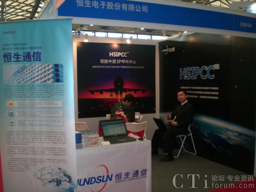 CTI論壇(ctiforum)11月20日消息(記者 張塵):近日,2009中國國際工業(yè)博覽會在上海新國際博覽中心隆重召開。恒生通信攜其自主知識產(chǎn)權(quán)的HSIPCC(Hundsun IP Callcenter,恒生IP呼叫中心)核心平臺亮相本屆工博會。受到了與會各界代表的廣泛關(guān)注。
