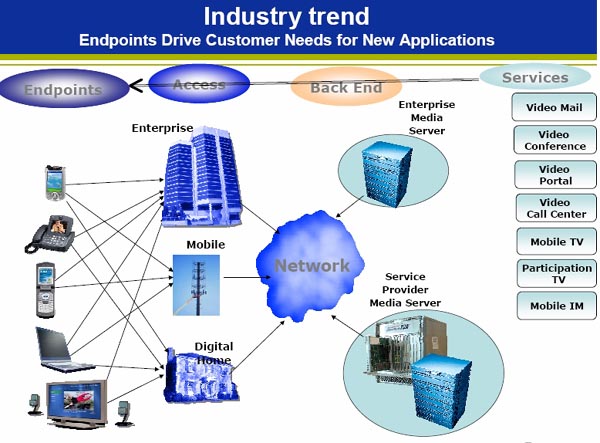 從英特爾獨立出來以后隨著業(yè)務重點的改變,Dialogic在自身的定位上也發(fā)生著變化。丁培江指出:“因為英特爾的重點是盡可能把處理器應用到不同的平臺上。所以以前在英特爾我們關(guān)注的重點是如何在ATCA架構(gòu)上處理多媒體,獨立處理以后,我們傳統(tǒng)的媒體處理還沒有放棄,但由于3G的重點是應用,所以我們的目標是用我們產(chǎn)品幫助合作伙伴構(gòu)建基于3G的應用,由于3G是逐步演進的,所以一定有TDM和IP的接口,我們就解決如何跨接,如何用多媒體板卡來處理視頻,無線和IP。這是我們專注的地方,我們會陸續(xù)推出新產(chǎn)品來構(gòu)建面向3G的多媒體應用!