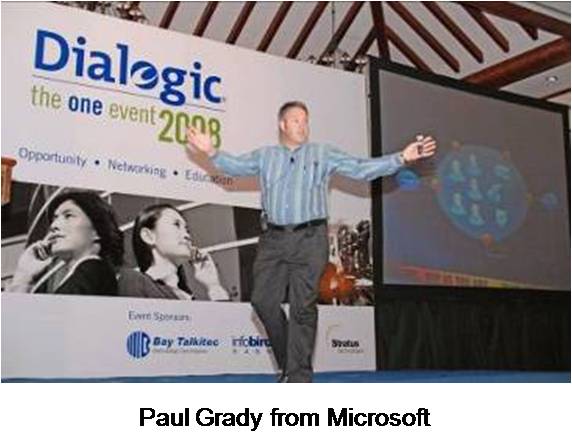 第二天上午,會議以Dialogic總裁兼CEO Nick Jensen強(qiáng)有力的演講開始,隨后是Dialogic執(zhí)行副總裁兼COO Tim Murray和Dialogic市場高級副總裁Jim Machi。 面向整個宴會廳的與會者,全天的會議包括了來自Dialogic產(chǎn)品線總監(jiān)James Rafferty和Dialogic企業(yè)產(chǎn)品線市場經(jīng)理Bud Walder等內(nèi)部演講者,和來自Yankee Group, PT. Excelcomindo Pratama 和Microsoft等外部演講者們激動人心的演講。會議結(jié)束時,由我們的合作伙伴Bay Talkitec贊助,有三個幸運(yùn)贏家贏得了iPod touch 16G,iPod nano 8G和4G。
