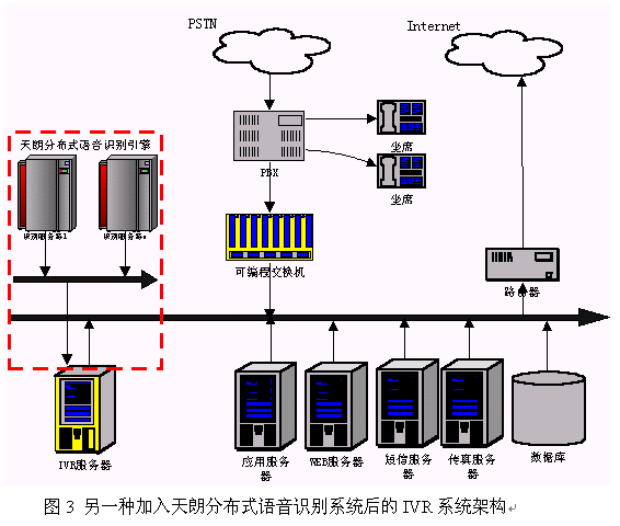 隨著語音識別的實用化進程加快,人們越來越認識到采用語音識別技術(shù)有利于極大的提高傳統(tǒng)按鍵方式IVR界面的友好性,提高服務(wù)的質(zhì)量。另外,采用語音識別技術(shù)可以把以前不可能實現(xiàn)的事情變得可行。因此,目前IVR行業(yè)越來越多的人認識到語音識別技術(shù)的重要性,一些先行者已把語音識別技術(shù)集成到他們的系統(tǒng)中。那么,一個IVR廠商如何把天朗分布式語音識別系統(tǒng)集成到他們的IVR中呢?