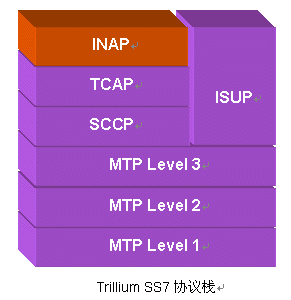Trillium的SS7產(chǎn)品非常齊全,窄帶SS7產(chǎn)品包括ISUP、TUP、INAP、TCAP、TCAP over TCP/IP、SCCP、MTP3、MTP2、MTP1;Trillium的寬帶SS7產(chǎn)品包括B-ISUP、MTP3-B、Q.2140、Q.SAAL(SSCOP)、AAL5。此外,Trillium還提供無線領(lǐng)域的SS7產(chǎn)品,包括GSM和IS-41 MAP, CAP(CAMEL Application Part)。