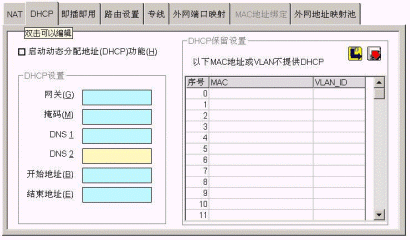 可以對NAT,DHCP,即插即用,路由設(shè)置,外網(wǎng)端口映射,Mac地址綁定,地址映射進(jìn)行詳細(xì)配置。