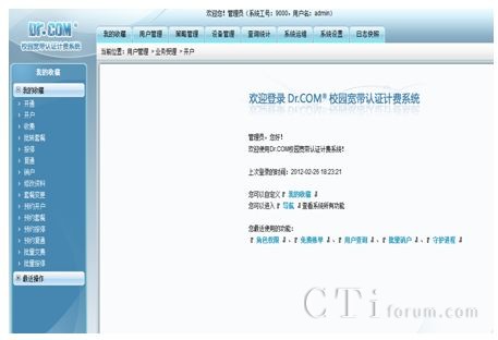 在認證計費系統(tǒng)軟件部署中,城市熱點采用了全新的B/S版本,系統(tǒng)采用Oracle數(shù)據(jù)平臺,提供具有高效穩(wěn)定的數(shù)據(jù)后臺架構(gòu)。該版本具有部署快捷,易于維護的優(yōu)勢,方便了后臺維護人員在系統(tǒng)的管理操作過程。