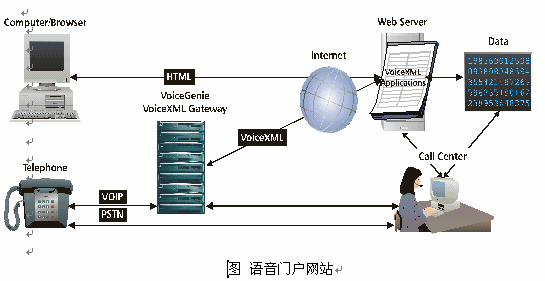 VoiceSoft先進(jìn)的技術(shù)可以將傳統(tǒng)的電力公司的網(wǎng)站改造為語(yǔ)音門(mén)戶網(wǎng)站,用戶既可以通過(guò)傳統(tǒng)的internet方式瀏覽電力公司網(wǎng)站,也可以通過(guò)電話撥入的方式獲得網(wǎng)站上的信息,使用網(wǎng)站上的功能,利用ASP的技術(shù),實(shí)現(xiàn)語(yǔ)音服務(wù)數(shù)據(jù)和網(wǎng)上瀏覽數(shù)據(jù)同步更新。