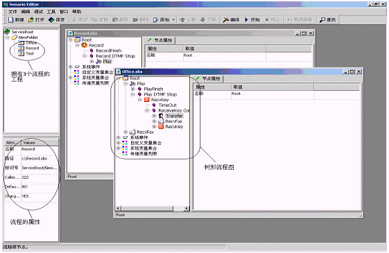 ·系統(tǒng)提供流程調(diào)試功能,調(diào)試器提供事件模擬器用來(lái)模擬"電話按鍵"以及其他與硬件相關(guān)的"事件"。可以在沒(méi)有語(yǔ)音板卡條件下實(shí)現(xiàn)摘機(jī)、語(yǔ)音播放、傳真收發(fā)、座席轉(zhuǎn)接等操作;