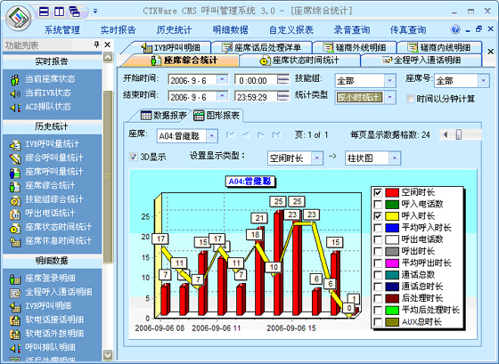為了解整個呼叫中心系統(tǒng)的運行狀況和工作人員的工作情況,系統(tǒng)由專門的數(shù)據(jù)統(tǒng)計功能。數(shù)據(jù)統(tǒng)計功能對各種信息資料進行管理,數(shù)據(jù)統(tǒng)計功能負責(zé)收集、統(tǒng)計系統(tǒng)資源的利用情況、各項業(yè)務(wù)的執(zhí)行情況、系統(tǒng)整體運行情況,并可定期刷新數(shù)據(jù)形成報表。