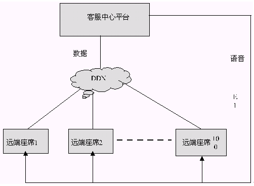 所謂PSTN+DDN的聯(lián)網(wǎng)方式是遠端座席和主呼叫中心的語音和數(shù)據(jù)互連是分開來的,彼此互相不干擾。語音方面遠端座席和主呼叫中心的相聯(lián)與前兩種方式不同,是主呼叫中心通過外呼將話路接到遠端座席處。數(shù)據(jù)方面遠端座席和主呼叫中心的相聯(lián)仍然直接通過DDN相連。