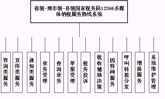 省級國家稅務局12366多媒體納稅服務熱線系統(tǒng)的業(yè)務功能結構如下圖所示: