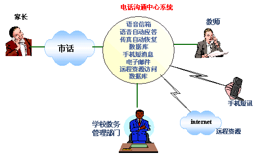 為此,很多學(xué)校都建立了自己的網(wǎng)站來作為對外宣傳和溝通的窗口,同時,不少學(xué)校還建立了校園網(wǎng),但僅僅通過INTERNET來獲取相應(yīng)的學(xué)生信息和學(xué)校信息是不夠的,畢竟不是每個家長都上網(wǎng)的,就算上網(wǎng)也只是偶爾,不能達到和學(xué)校經(jīng)常溝通的效果,尤其是在不很發(fā)達的地區(qū)這種現(xiàn)象尤為明顯。因此學(xué)校與家長的溝通必須建立在一種十分普及的通訊方式基礎(chǔ)上,而當前最為普及的通訊方式莫過于電話了。