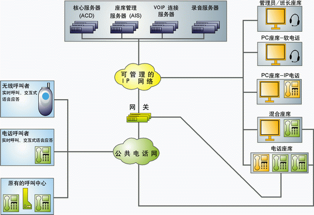 完全克服了傳統(tǒng)的客服中心對(duì)座席地理位置的約束,可以在多個(gè)地點(diǎn)設(shè)有座席和與電信公網(wǎng)的接入點(diǎn),座席分布在多個(gè)地點(diǎn)獨(dú)立運(yùn)營(yíng),但由一個(gè)中心點(diǎn)來控制和管理。