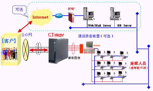 近來客戶關(guān)系管理逐漸成為注目的焦點,客戶服務(wù)中心(即呼叫中心)已不再是電信企業(yè)、航空公司、商業(yè)銀行等大型企業(yè)與用戶密切交互的媒體,許多中小型企業(yè)也逐漸認(rèn)識良好客戶關(guān)系的提升已成為競爭時代的致勝關(guān)鍵。同時,呼叫中心經(jīng)過幾年的發(fā)展與摸索,產(chǎn)品的穩(wěn)定性和價格已經(jīng)鎖定在企業(yè)可以接受的范疇。在"完美服務(wù)質(zhì)量""對外有效提高客戶服務(wù)質(zhì)量,擴大收入;對內(nèi)大幅提高員工生產(chǎn)力,降低成本"的巨大期待下,各企業(yè)開始了建設(shè)呼叫中心的步伐,也開始了對合作伙伴的挑剔選擇。而由日本沖電氣(OKI)公司提供基于CTI產(chǎn)品CTstage構(gòu)筑的UnPBX型呼叫中心,為中國的中小型企業(yè)量身打造了完美的客戶服務(wù)中心。