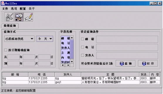 ·也可以通過給定查詢條件來查詢某項(xiàng)內(nèi)容,如針對某個郵箱、手機(jī)電話或發(fā)件人,方法是通過點(diǎn)擊左邊的小方框來選中,然后輸入相應(yīng)內(nèi)容即可,如下圖: