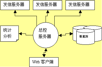 1. 以總控服務器為控制中心,控制一臺或多臺郵件發(fā)送服務器,每臺發(fā)送服務器管理一個或多個郵件隊列?刂浦行目刂凄]件列表,任務列表、作業(yè)列表,并與業(yè)務數據庫通過數據庫接口連接,根據條件提取數據,更新郵件發(fā)送列表,生成統計分析報告。