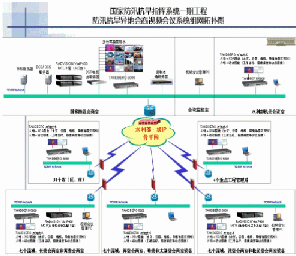 "工欲善其事,必先利其器"。為了推動國家"金水工程"對信息化的要求,2003年,水利部就開始著手籌建國家防汛抗旱指揮視頻會議系統(tǒng)。按照當初的項目規(guī)劃,這次視頻會議系統(tǒng)的建設主要包括水利部、7個流域機構、31個。▍^(qū)、市)和4個重點工程局等43個單位的44個節(jié)點。