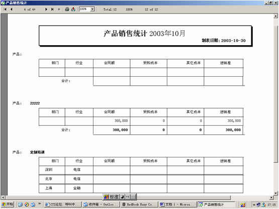 產(chǎn)品合同銷(xiāo)售額統(tǒng)計(jì)