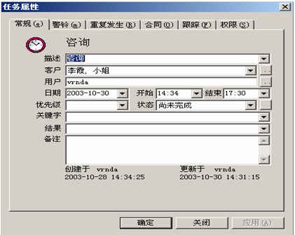 對(duì)與客戶(hù)進(jìn)行的活動(dòng)可進(jìn)行任務(wù)跟蹤和警鈴提醒。