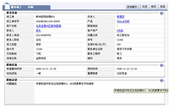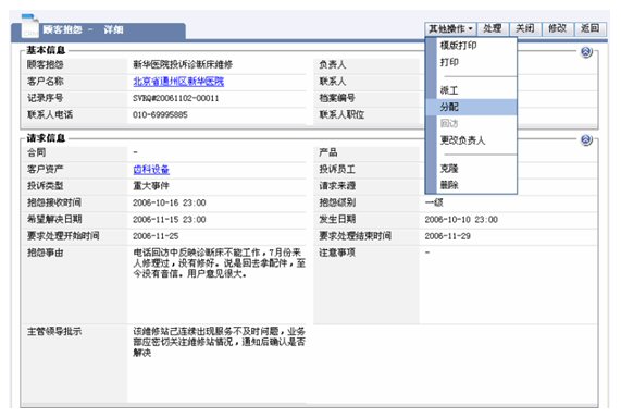 醫(yī)療設(shè)備的維修以現(xiàn)場服務(wù)為主,在接到客戶服務(wù)請求到派工的流程,依靠紙張遠(yuǎn)遠(yuǎn)達(dá)不到高效的要求,維修情況的記錄已僅僅是事后的文字記錄,通常需要層層上報(bào),更不具備匯總和統(tǒng)計(jì)分析的功能,作為領(lǐng)導(dǎo)不能適時(shí)監(jiān)控和管理在外的維修服務(wù)工程師。