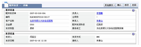 更換配件或安裝配件的發(fā)貨管理。