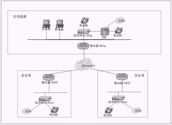 1) 在每個分公司安裝集成88IP的路由器,再通過路由器做端口映射到VOIP設(shè)備上。