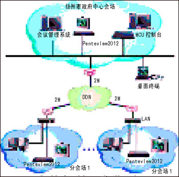 揚州市電子政務(wù)是江蘇省第一家電子政務(wù)試點單位, 該項目建成后,在電子政務(wù)專網(wǎng)上實現(xiàn)市、區(qū)縣兩級較高圖像和聲音質(zhì)量的交互式視頻會議。