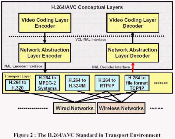 根據(jù)圖2,H.264/ AVC在不同的概念層上區(qū)分開來,視頻編碼層(VCL)和網(wǎng)絡(luò)抽象層(NAL)。VCL和NAL都是H.264/ AVC標準的一部份。VCL對視頻編碼信號進行了有效的說明。H.264/AVC的NAL定義了視頻編碼和外面世界之間的接口。它通過NAL單元來支持大部分基于包的網(wǎng)絡(luò)。在NAL解碼接口,它假設(shè)NAL單元已經(jīng)通過解碼命令被發(fā)送,數(shù)據(jù)包要么被正確接受,要么丟失,如果有效載荷里包括了錯誤的數(shù)據(jù)流,NAL單元的頭就會產(chǎn)生一個錯誤的標記。由于標記可以用于不同的目的,因此它并不作為標準的一部分。然而,它提供一個在整個網(wǎng)絡(luò)里提供錯誤指示信號的方法。此外,接口規(guī)范要求標準化主體有責任對不同傳送協(xié)議進行描述。NAL單元在不同傳輸系統(tǒng)的精確傳輸和加密,例如H.320,MPEG-2系統(tǒng)和RTP/IP,也同樣在h.264/AVC標準化的范疇以外。在標準里面正式定義了NAL解碼接口,然而,VCL和NAL之間的接口只是概念上的定義,主要是幫助描述和分開VCL和NAL的任務(wù)。