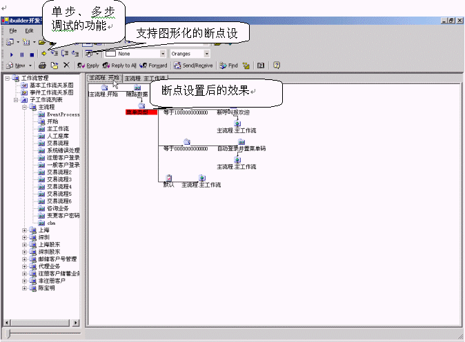 該產(chǎn)品通過將所有業(yè)務(wù)分別處于樹形化的節(jié)點(diǎn)上,可以直觀的對業(yè)務(wù)進(jìn)行增加、刪除、修改的管理。增加子業(yè)務(wù)的時(shí)候,必須帶有業(yè)務(wù)類別,實(shí)現(xiàn)業(yè)務(wù)管理歸類化,避免業(yè)務(wù)管理的混亂。該產(chǎn)品還支持業(yè)務(wù)流程的樹形化表示,使業(yè)務(wù)流程開發(fā)者可以方便地了解業(yè)務(wù)流程的全局框架。