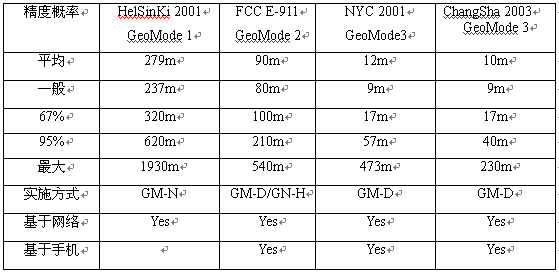 定位精度:GPS最高,GeoMode次之,E-OTD和TDOA次之,Cell ID最差;
