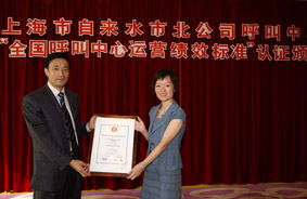 2004年9月16日,上海自來水市北有限公司正式通過《全國呼叫中心運(yùn)營績效標(biāo)準(zhǔn)》(CCCS-PQ)認(rèn)證(四星級(jí)客戶服務(wù)中心) ,成為中國公用事業(yè)第一家,也是上海地區(qū)首家通過此認(rèn)證的呼叫中心。