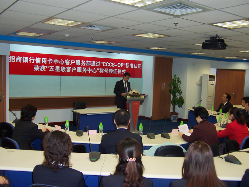 招商銀行信用卡中心客戶服務(wù)中心(800-820-5555)成立于2002年,是集電話服務(wù)熱線、傳真、電子郵件、短信服務(wù)以及互聯(lián)網(wǎng)等客戶溝通渠道于一體的多功能客戶服務(wù)中心,為所有招商銀行信用卡用戶提供365×24×7全年無休的優(yōu)質(zhì)客戶服務(wù),曾榮獲“2004中國最佳呼叫中心”稱號。作為中國銀行業(yè)率先加入CCCS標(biāo)準(zhǔn)認證體系的企業(yè),通過此次認證,一方面使得招商銀行客戶服務(wù)中心的運營管理水平進一步得到了提升和改善,實現(xiàn)規(guī)范化、精細化;另一方面,CCCS標(biāo)準(zhǔn)也從該公司在客戶服務(wù)和客戶關(guān)系管理方面所積累起來的寶貴實踐經(jīng)驗中汲取了養(yǎng)分,使CCCS標(biāo)準(zhǔn)能夠不斷地完善和發(fā)展。