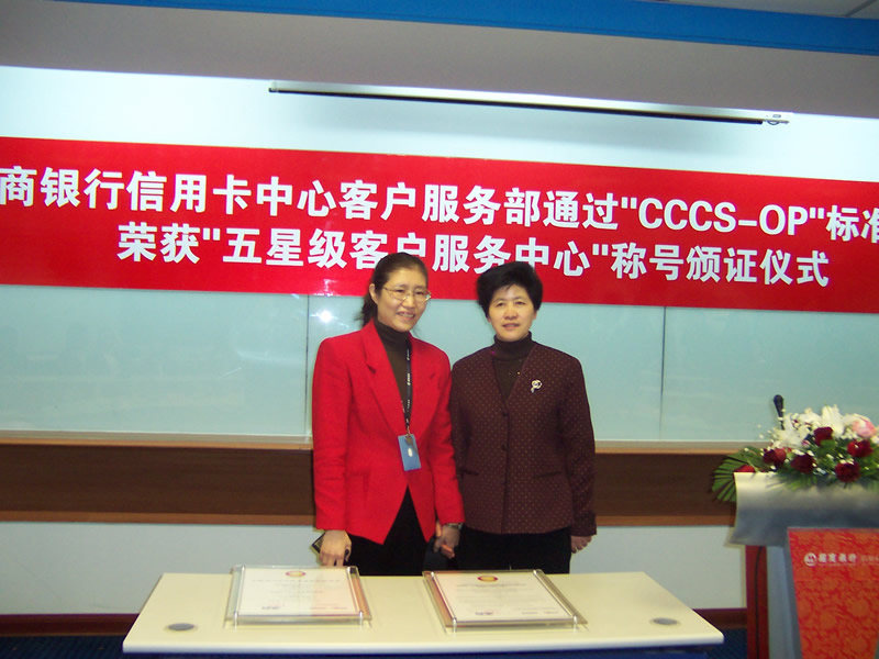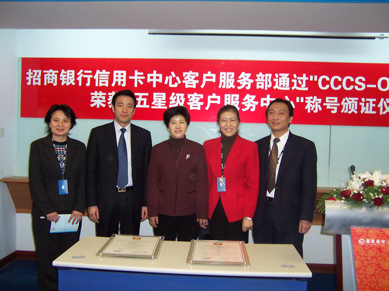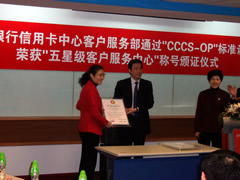 這天的上午10點30分,在招商銀行信用卡中心上?偛颗e行了簡約而隆重的頒證儀式,信用卡中心常務(wù)副總經(jīng)理梁瑤蘭從信息產(chǎn)業(yè)部電子信息中心副主任、中國信息化推進聯(lián)盟秘書長劉獻軍手中接過證書,標(biāo)志著國內(nèi)第一家五星級客戶服務(wù)中心誕生了!