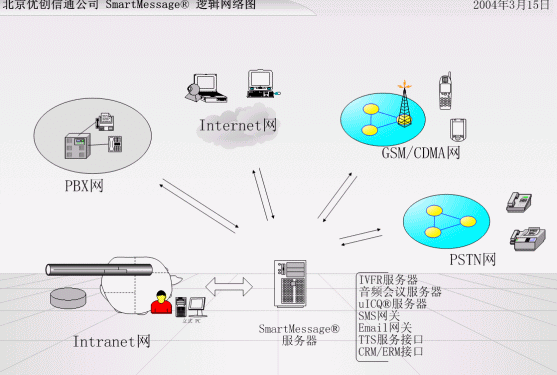 完全自主版權(quán)的 SmartMessage Pro®是專為企業(yè)級使用單位設計的通信服務平臺,提供多種通信一體化解決方案,如統(tǒng)一消息、語音郵件、交互會議、IVR、手機短信/傳真/電話服務及呼叫中心,這些應用可無縫集成在一套標準化平臺上,是全方位實施CRM系統(tǒng)和電子商務服務解決方案的重要組成。