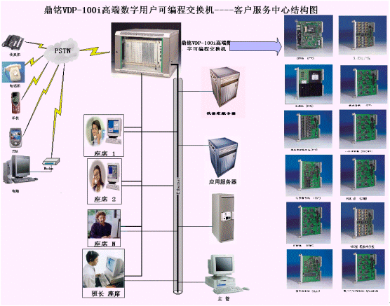 鼎銘公司本著“為用戶提供最優(yōu)質(zhì)、最可靠、最先進(jìn)的產(chǎn)品”的思想原則,研究并開發(fā)出了一代又一代針對(duì)用戶實(shí)際需要而設(shè)計(jì)開發(fā)出開放式、可擴(kuò)容性語(yǔ)音板卡和高端數(shù)字可編程交換機(jī),同時(shí)還提供開放式cti系統(tǒng)集成軟件的開發(fā)平臺(tái)。其中擁有自主知識(shí)產(chǎn)權(quán)的-高端數(shù)字可編程產(chǎn)換機(jī)產(chǎn)品技術(shù)水準(zhǔn)代表了我國(guó)在該領(lǐng)域的最新發(fā)展動(dòng)態(tài),處于國(guó)內(nèi)領(lǐng)先水平,性價(jià)比與服務(wù)優(yōu)勢(shì)已超越國(guó)外某些同類產(chǎn)品。