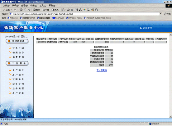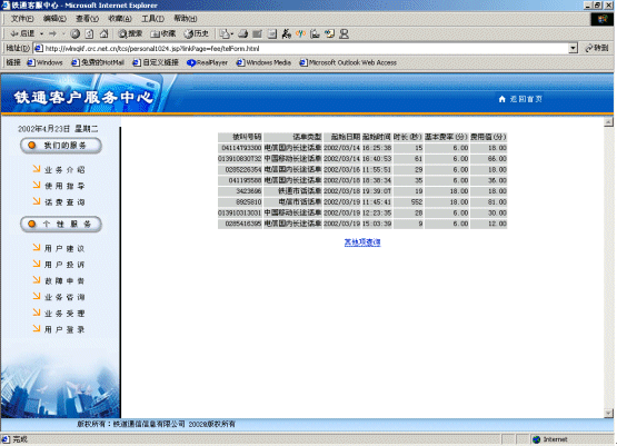 1) 鐵通業(yè)務(wù)咨詢界面