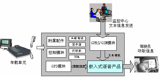 首先,當(dāng)車(chē)載GPS單元接收到由監(jiān)控中心發(fā)來(lái)的調(diào)度、提醒、叫車(chē)等信息時(shí),語(yǔ)音合成會(huì)伴隨顯示器上的顯示,同步將文字讀出,轉(zhuǎn)變?yōu)榍逦鲿车脑捯,這樣一方面司機(jī)不用特意在駕駛中注意顯示屏的文字內(nèi)容而同樣可以及時(shí)獲取信息的內(nèi)容,另一方面也減少了因?yàn)榉稚耨{駛而引發(fā)的交通安全隱患。
