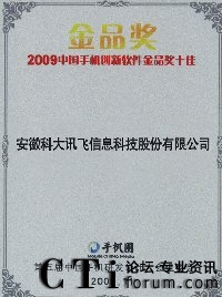 科大訊飛獲“2009中國手機創(chuàng)新軟件金品獎十佳”企業(yè)獎