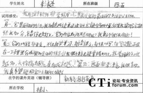 CTI論壇(ctiforum)1月21日消息(記者 潘婷婷):2010年12月,科大訊飛在天津市的兩所小學(xué)舉辦了暢言互動英語學(xué)生版試用體驗(yàn)活動,同學(xué)們積極參與,在校園內(nèi)掀起了一股練聽力、學(xué)口語的英語學(xué)習(xí)熱潮。通過實(shí)際試用體驗(yàn),暢言互動英語學(xué)生版學(xué)習(xí)產(chǎn)品以其強(qiáng)大、實(shí)用的學(xué)習(xí)功能,得到了廣大家長、學(xué)校師生的一致認(rèn)可和充分肯定。