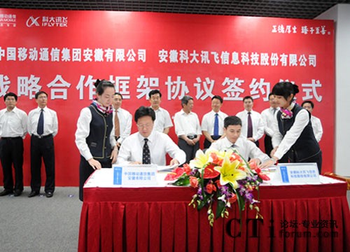CTI論壇(ctiforum)7月14日消息(記者 張潔):7月11日下午,安徽科大訊飛信息科技股份有限公司與中國(guó)移動(dòng)通信集團(tuán)安徽有限公司在合肥簽署戰(zhàn)略合作框架協(xié)議。根據(jù)協(xié)議,科大訊飛和安徽移動(dòng)將在技術(shù)和業(yè)務(wù)創(chuàng)新等方面開展深層次合作。