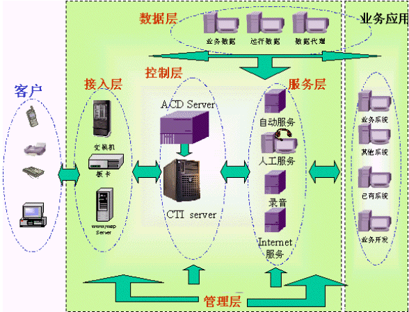 特點(diǎn):投資較大,采用CTI技術(shù)來完成呼叫中的功能;適合建設(shè)大型、外包型呼叫中心。