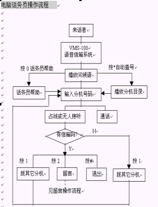 1. 在使用了VMS-100 Plus語(yǔ)音信箱服務(wù)器電腦話務(wù)員智能轉(zhuǎn)接功能的情況下,當(dāng)分機(jī)占線或無(wú)人接聽(tīng)時(shí)如果您選擇了留言,系統(tǒng)便將您的電話接通至相應(yīng)的留言信箱。