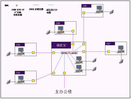 下例示圖是本產(chǎn)品的應(yīng)用實例。示圖中CS**和調(diào)度室均為現(xiàn)場操作人員工作的控制室。通過調(diào)度室同廠辦公樓實現(xiàn)網(wǎng)絡(luò)之間的互聯(lián)。每一臺信號處理服務(wù)器帶4到8個攝像頭,主辦公樓內(nèi)在現(xiàn)有的計算機(jī)上安裝了本公司的遠(yuǎn)程監(jiān)視軟件,實現(xiàn)了管理人員及廠領(lǐng)導(dǎo)的遠(yuǎn)程監(jiān)視的功能。