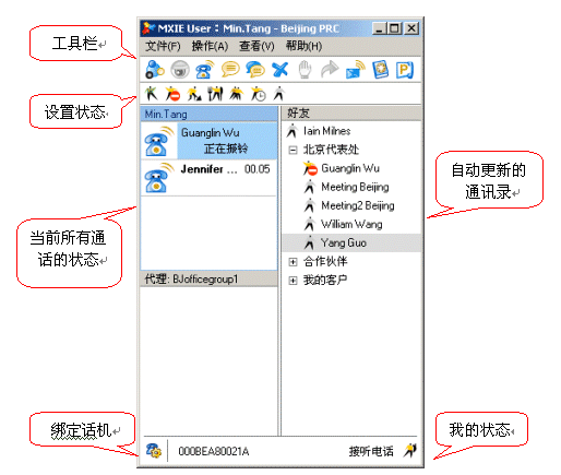 MXIE是一個(gè)用戶端UCI(Unified communications Interface,統(tǒng)一通信界面)軟件。通過它可以實(shí)時(shí)設(shè)置或查看工作狀態(tài);使用自動(dòng)更新的通訊錄,無(wú)需撥號(hào)進(jìn)行呼叫;發(fā)送即時(shí)消息(IM:Instant Message,軟件和電話互發(fā));發(fā)送/收聽語(yǔ)音郵件;群發(fā)/群收傳真;設(shè)置個(gè)性化的來(lái)電處理規(guī)則等。