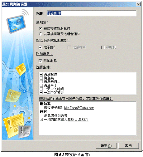 系統(tǒng)還可以將語(yǔ)音留言(或留言通知)直接發(fā)送到用戶的個(gè)人電子郵件信箱,以保證用戶外出時(shí)也能及時(shí)收聽(tīng)留言,如果用戶的電子郵件信箱支持手機(jī)短信功能,那么,當(dāng)有新留言時(shí),用戶就可以收到手機(jī)短訊。