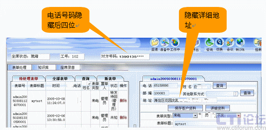 例如電話號(hào)碼、送貨地址是最為重要的商業(yè)信息。將部分信息對(duì)電銷人員、中間環(huán)節(jié)的人員隱藏使其無(wú)法進(jìn)行“飛單”,而在送貨環(huán)節(jié)再OPEN詳細(xì)信息。如下圖所示:
