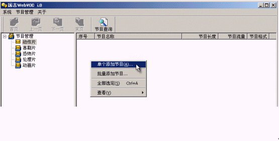 文件管理器是添加節(jié)目的地方,想要在系統(tǒng)里增加新節(jié)目就靠它了。雙擊打開,輸入用戶名、密碼,進入,加節(jié)目。要注意的是加節(jié)目的方式,最基本就是一個一個慢慢加的"添加單個文件",覺得用這種方式加少量的節(jié)目還行,加多的話誰也受不了。