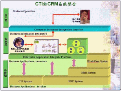 但傳統(tǒng)的CTI系統(tǒng)其重點(diǎn)乃是著重在服務(wù)工作的自動(dòng)化方面,只提供簡(jiǎn)單的客戶來(lái)電訊息提示,對(duì)于客戶進(jìn)一步的背景資料、嗜好、購(gòu)買需求及歷史往來(lái)記錄并不清楚也無(wú)法實(shí)時(shí)得知,更別說想藉由CTI系統(tǒng)來(lái)提供客戶個(gè)人化的服務(wù)、有效節(jié)省通話時(shí)間、刺激其潛在的購(gòu)買需求,為了達(dá)成上述的目標(biāo),唯有將CTI系統(tǒng)與CRM系統(tǒng)進(jìn)行整合,如此,客戶服務(wù)的質(zhì)量才可能達(dá)成某個(gè)程度的提升,而良好的客戶關(guān)系管理也將是未來(lái)呼叫中心運(yùn)作成功與否的關(guān)鍵所在。